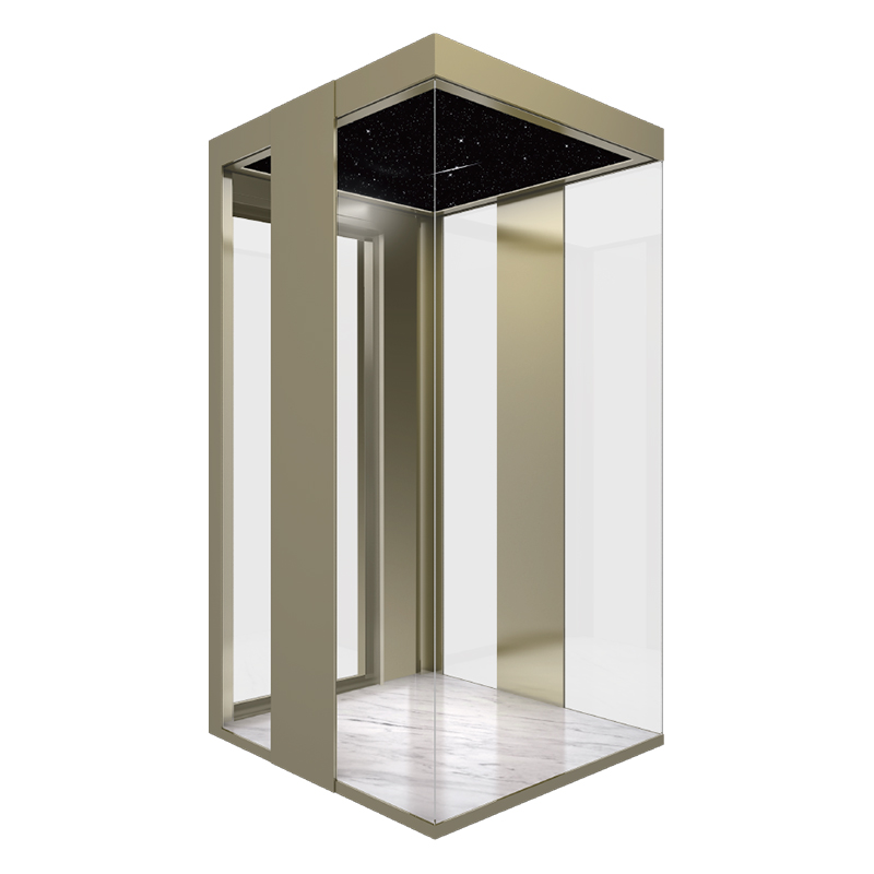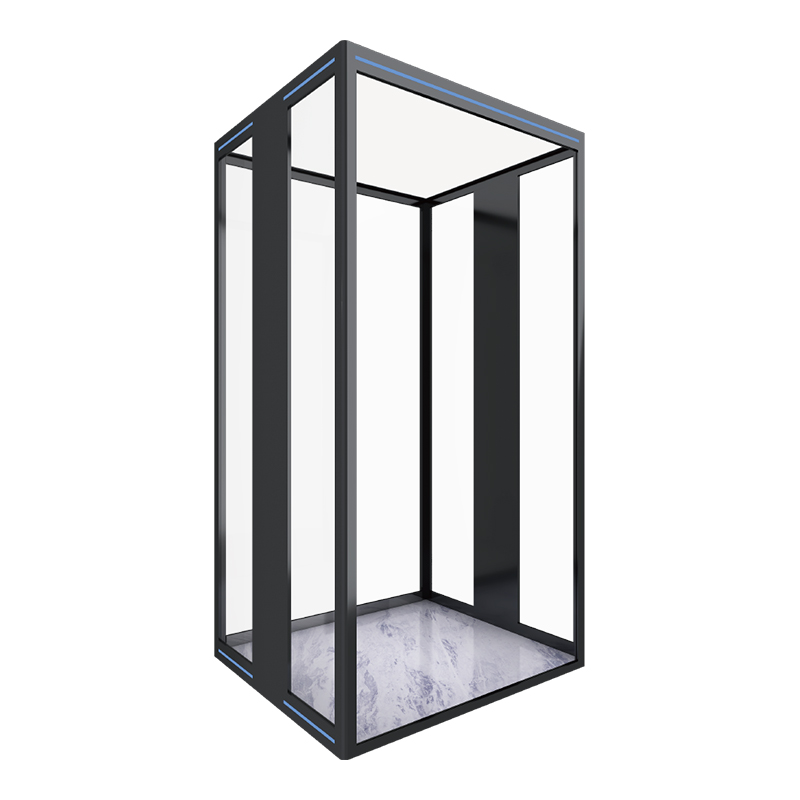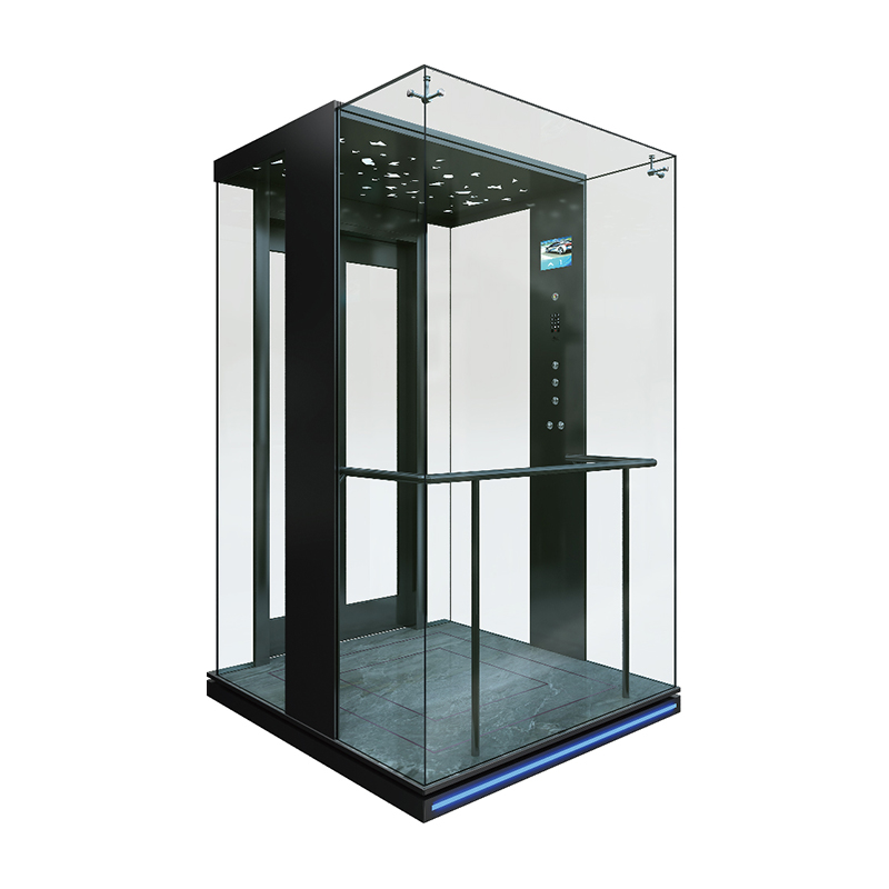 Proiectarea șinei de ghidare a mașinii joacă, de asemenea, un rol cheie în funcționarea lină a liftului. În elevatorul panoramic de vilă din sticlă, șinele de ghidare a mașinii sunt amplasate pe ambele părți ale mașinii. Nu numai că oferă suport stabil pentru mașină, dar asigură și mișcarea precisă a mașinii în direcția verticală. Suprafața șinei de ghidare este prelucrată și lubrifiată cu precizie, ceea ce reduce frecarea dintre mașină și șina de ghidare, reducând în continuare zgomotul. În același timp, distribuția forței șinei de ghidare este rezonabilă, astfel încât liftul să poată rămâne stabil chiar și atunci când rulează cu viteză mare, aducând utilizatorilor o experiență de călărie mai sigură și mai confortabilă.